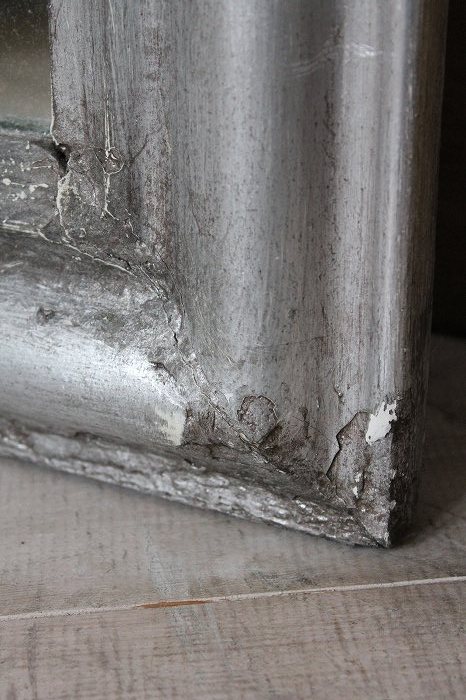美しい光沢のあるシルバーのオリジナルペイントのとても古いミラーです。
