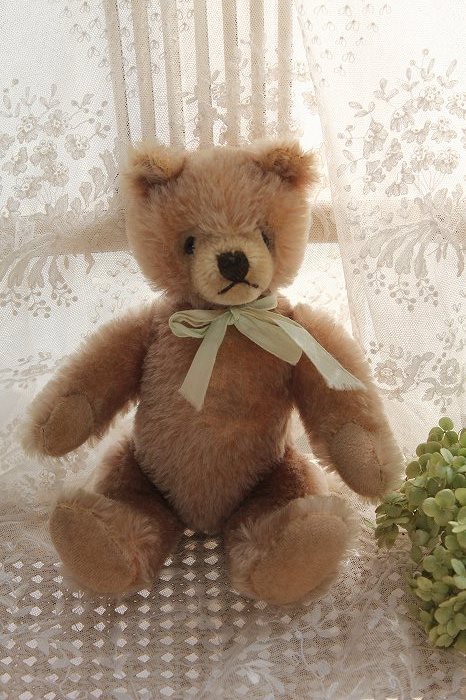 1970年代に作られた、とっても可愛らしいお顔のシュタイフのテディベアです。 明るいブロンズのモヘアの状態も良く、目だつダメージはみられません。 詰め物は藁、グラスアイ、フルジョイントタイプ。 IDボタンなどはありませんが、シュタイフのベアちゃんです。 時々IDボタンのない子を見つけますが、 おそらく小さな子供にはタグは邪魔な存在なので、 取り外してしまうのかもしれません。