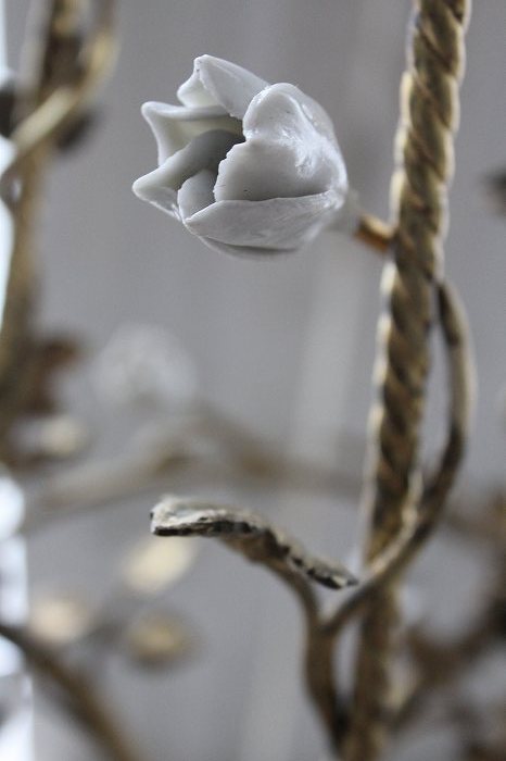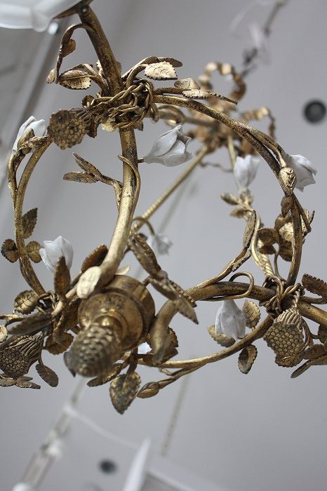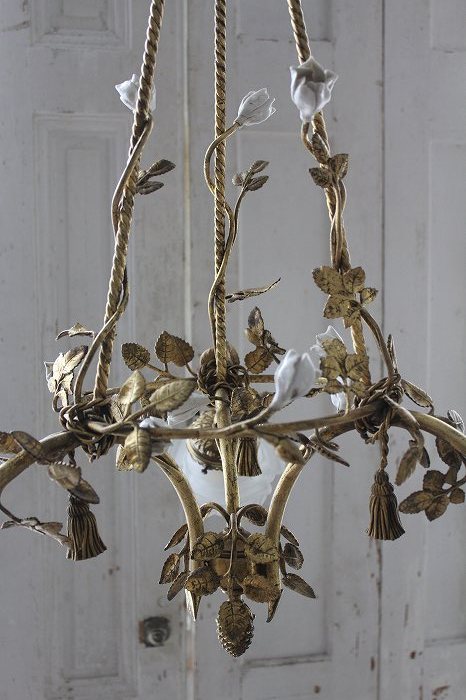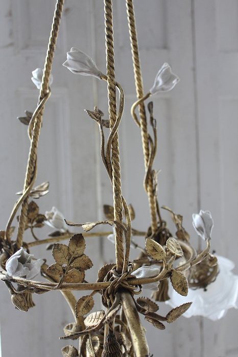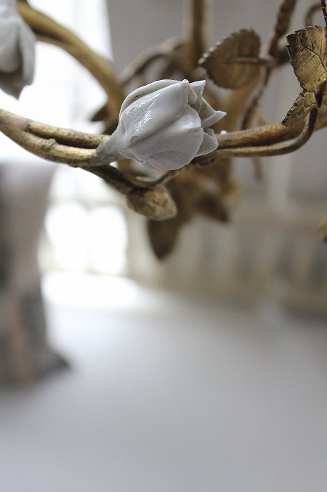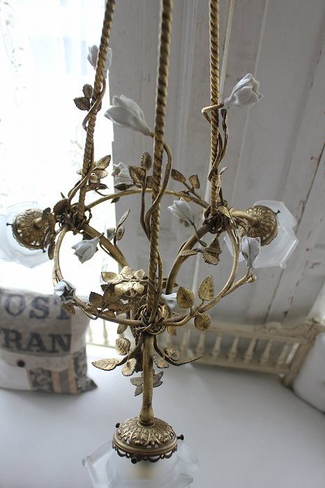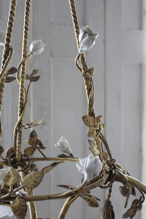 1920年代フランスアンティークのとても美しい白い陶器の蔓薔薇のシャンデリアです。