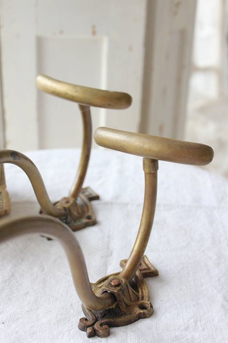 真鍮製の大きくて、とてもしっかりとしたコート&ハットフックです。 フランスアンティークらしい存在感が漂っていて、とても素敵です。 真鍮の表面に金属疲労が見られますが、真鍮の強度には、全く支障はありません。