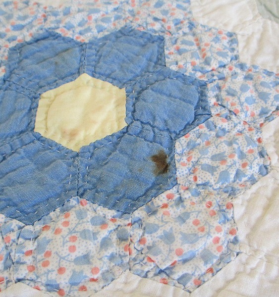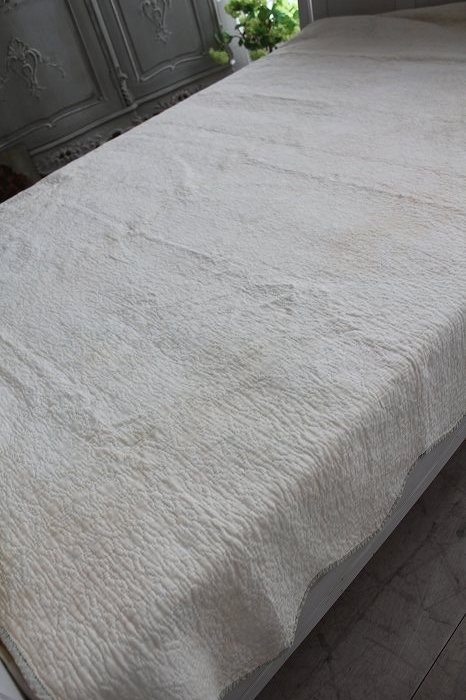 一度手洗いすることで、経年からの汚れなども落ちてクリーンなキルトに生まれ変わることと思います。こちらは比較的落ち着いたお色目のキルトとなります。