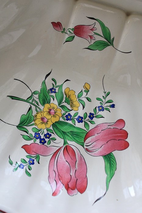 シンクの中央にある黄色のお花の真中あたりに細いライン状の絵の具のミスが