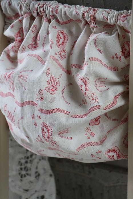 フローラル柄のアンティークファブリックで作ったバッグを取り付けています。