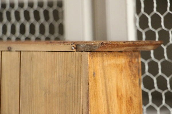 フランスアンティークの古い木製の郵便ポストです。 アクセントに古い時計のものでしょうか、エナメルの文字盤がデコレーションされています。 扉にはキーが設置されていますが、ドアノブ代わりに取り付けられていますので鍵はかかりません。 ドアの内側に木の変色などがみられます。 また、底は堅いブリキ製です。 1900年代初頭頃のかなり古い年代に使われていた郵便ポストとなります。 亀裂や変色などが見られますが、フランスアンティークの趣ある雰囲気をお楽しみ頂けることと思います。