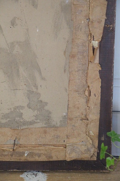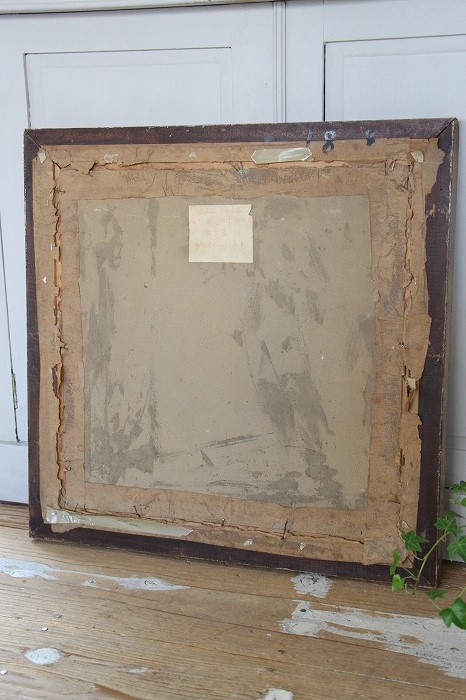 1958年 画家の直筆によるサインとタイトルと日付が記された紙が裏側に張られています。