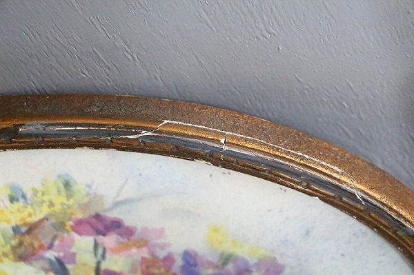 渋いゴールドとブルーグレーのペイントが施されたオーバル型のフレームはオリジナルです。