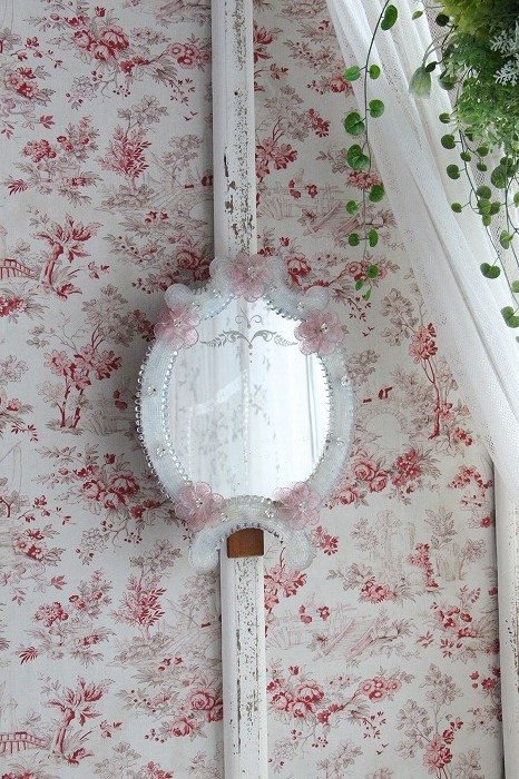 ミラーにはアラベスク模様の可愛らしいエッチングが施されています。