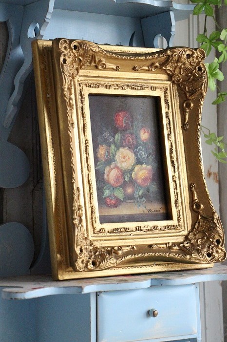 bouquet de fleurs 小さな油彩画 ゴールドギルトフレーム