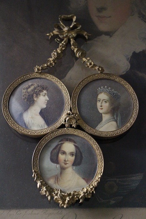 フレームの中には当時の古い貴婦人のプリントと吹きガラスがはめ込まれています。