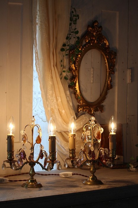 大き目のダイヤモンドカットのすみれ色ドロップの設置個所が左右のランプで異なります。