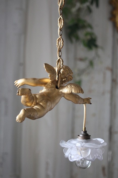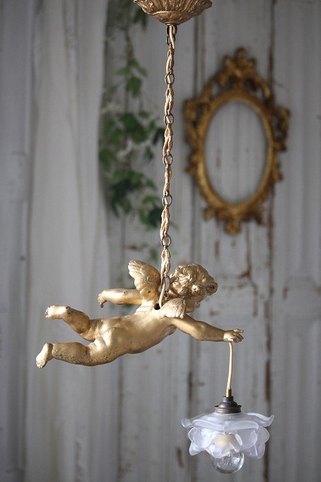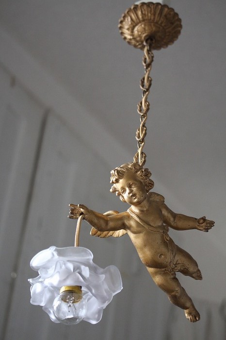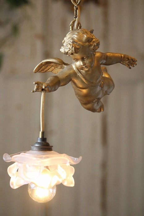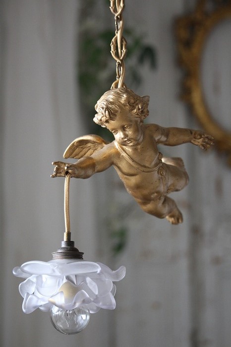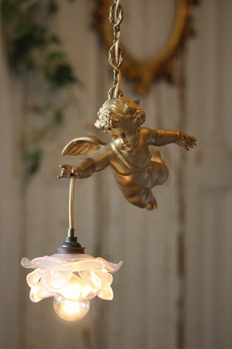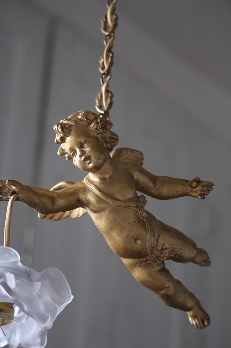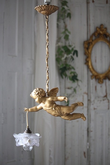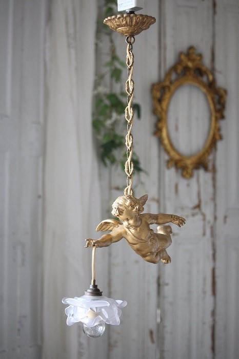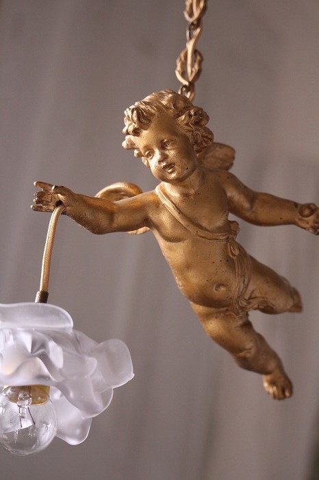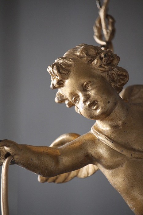 端正で美しい顔立ちのエンジェルの吊り下げランプです。