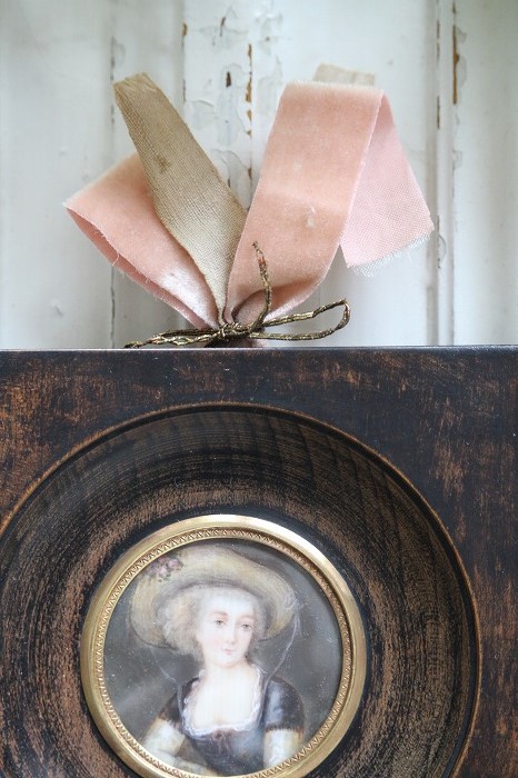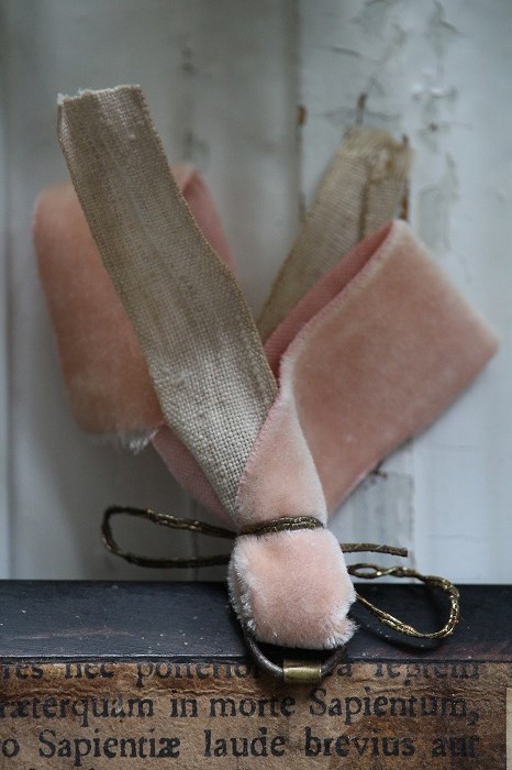 当時のままと思われるベルベットのリボンがあしらわれ、