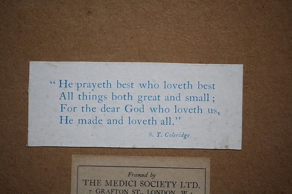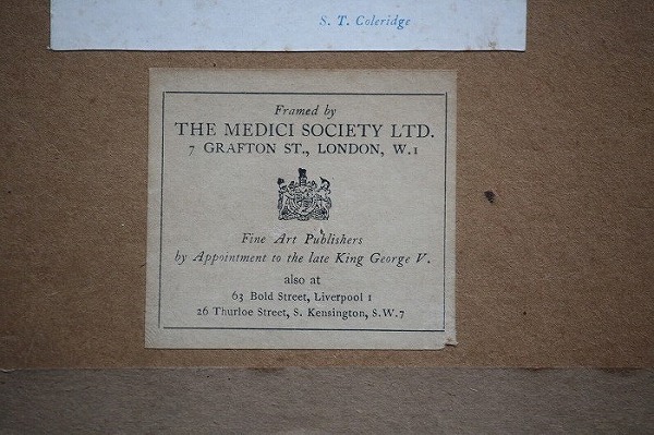 また、こちらのフレームは1908年にイギリスで創業したメディチ協会が1930年代頃に販売したプリント入りのフレームとなります。