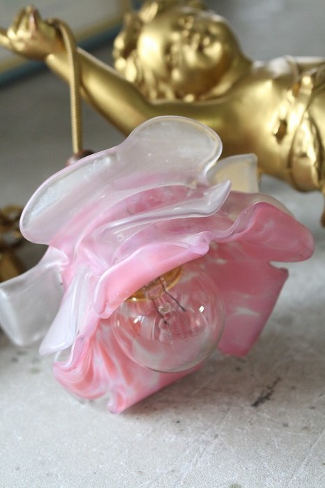 パート・ド・ヴェールのガラスシェードは、淡いピンク色の挿し色が混ざる