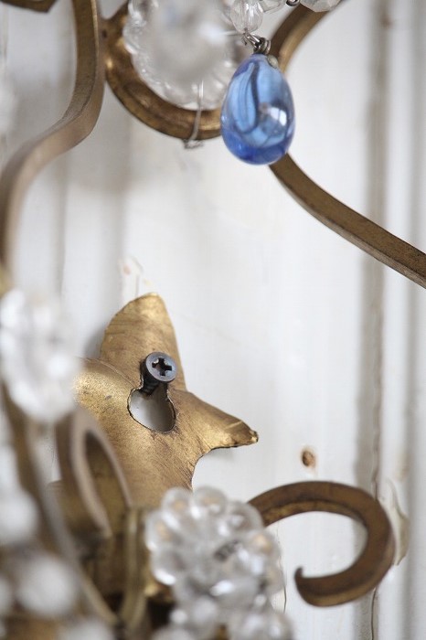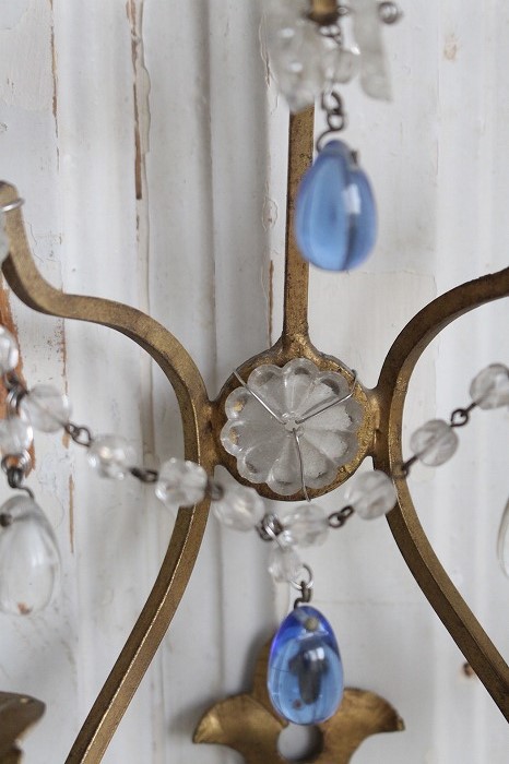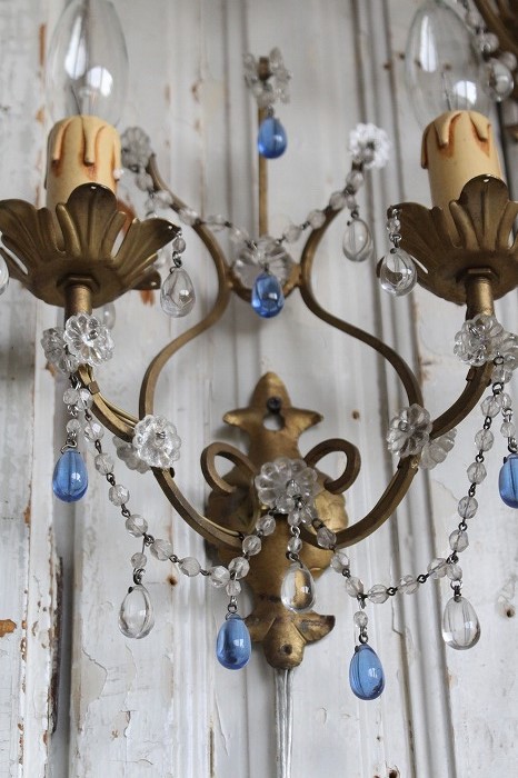 施された、フランスアンティークらしい雰囲気が魅力的な壁掛けランプです。