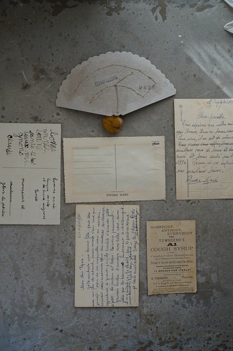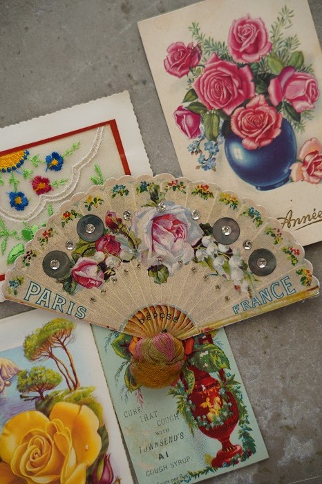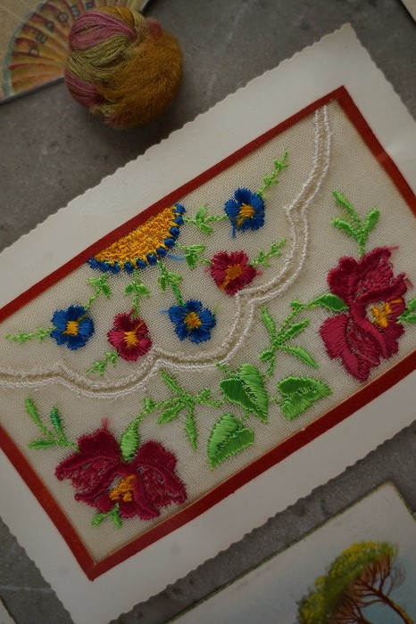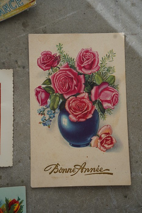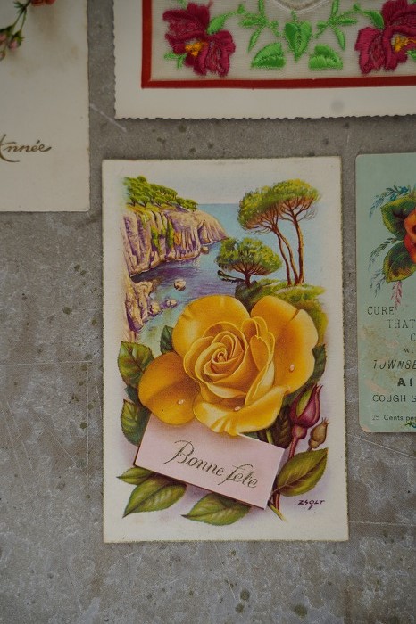 扇型カード幅17p 高さ11p アンティークポストカード14p×9p 4枚