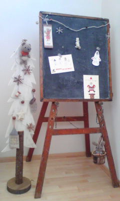 ◆チャドバレーの黒板スタンドを購入頂きましたI様より◆ 黒板のシャビ−感がツリーとマッチしてナチュラルな空間が作れました…** |
