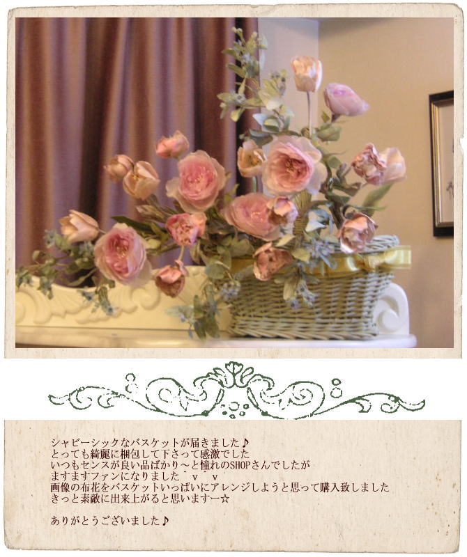 2011年11月26日(土曜日) 先日,シャビーシックペイントバスケットをご購入下さったH様より素敵なお写真とコメントが届きました♪ ------------------------------------------------------------------------------------