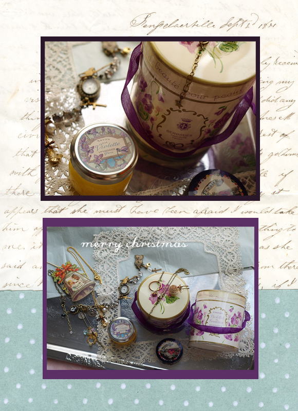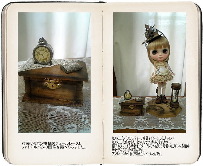 2011年8月30日( 火曜日) 先日フランスアンティーク小さなフォトアルバムペンダントをご購入下さったお客様より素敵なお写真とコメントが届きました♪ K様が最近とても気に入っておられるカスタムプライスと一緒に撮影して下さいました。 アンティーク風に作られている木箱なども全てハンドメイドとのこと。 素晴らしいセンスですね〜♪ 私も欲しくなりましたが、簡単には購入出来そうにないお値段・・・ しばらくはK様が送って下さった画像を眺めなています。