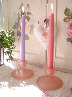 #sg41 英国製ヴィンテージ/フォレストピンクガラス・ペアキャンドルホルダー