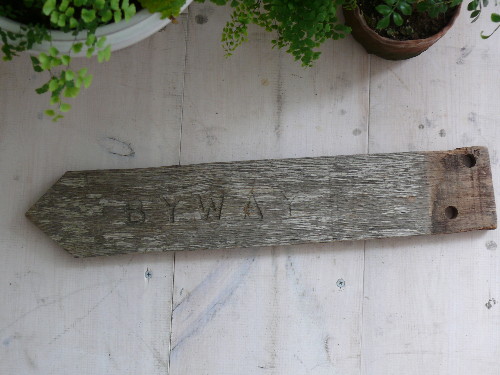 イギリス製の古い木製サインです。
