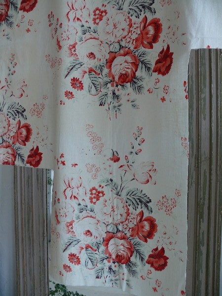 大輪の薔薇のブーケがプリントされたフレンチアンティークファブリックです。