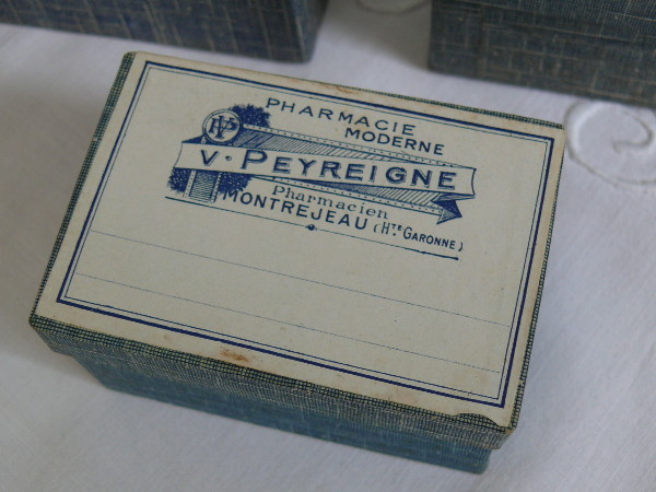1900年代初頭頃の古いファーマシーボックス3ピースセットです。